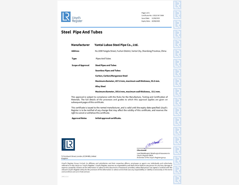 勞氏船級(jí)社LR證書