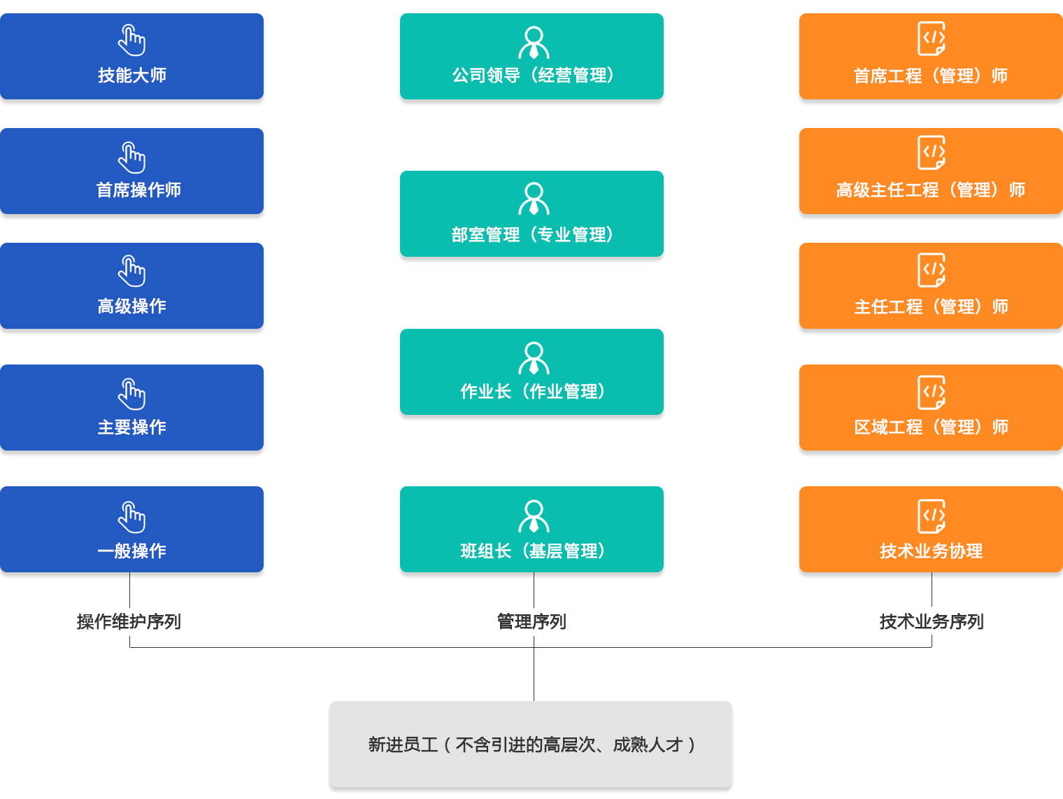 引導(dǎo)人才由“單一發(fā)展”向經(jīng)營管理、專業(yè)技術(shù)和操作維護(hù)多方向“多重發(fā)展”,公司根據(jù)崗位需求情況,并結(jié)合員工實(shí)際能力、意愿,可在各序列間轉(zhuǎn)崗。