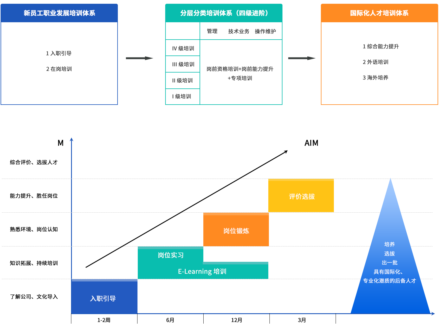 在搭建員工自主學(xué)習(xí)平臺的基礎(chǔ)上,建立了以支撐公司戰(zhàn)略發(fā)展為宗旨,以滿足企業(yè)發(fā)展和個(gè)人需求為導(dǎo)向,以提升員工專業(yè)能力、創(chuàng)新能力和綜合素質(zhì)為重點(diǎn)的戰(zhàn)略型、階梯式培訓(xùn)開發(fā)體系。