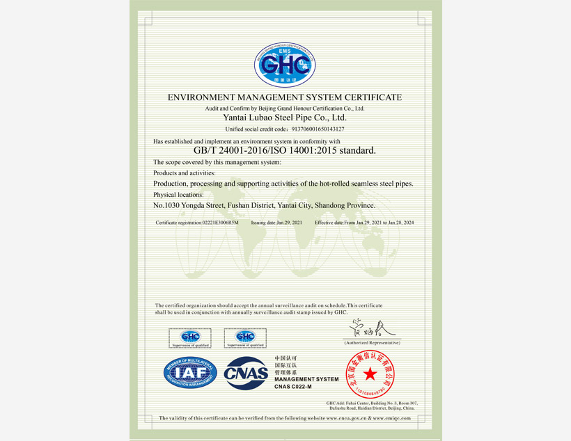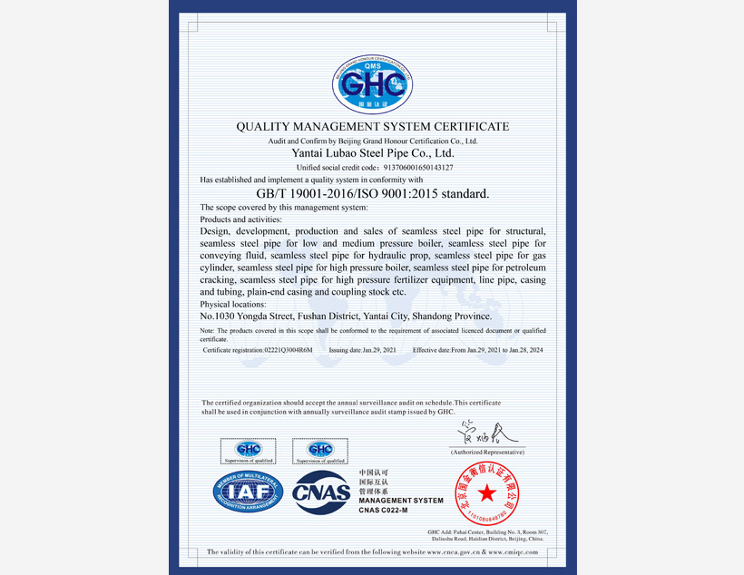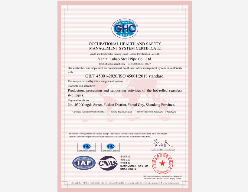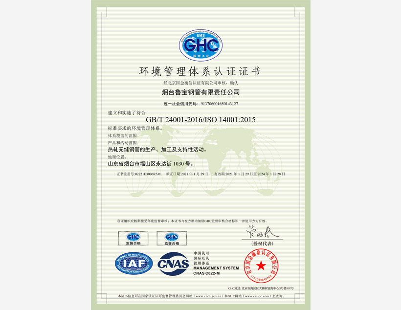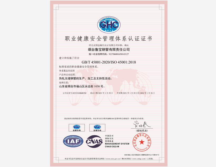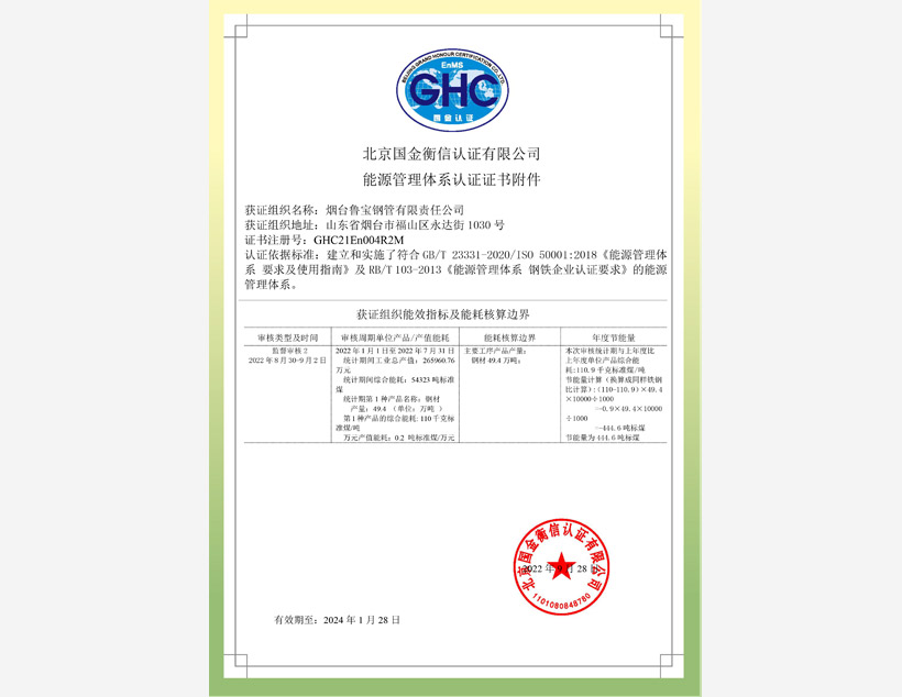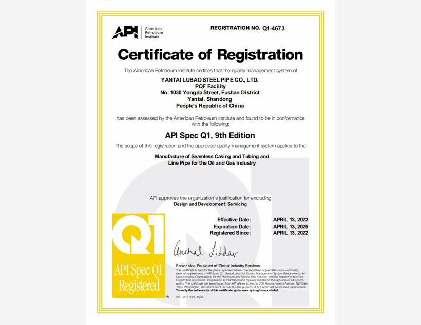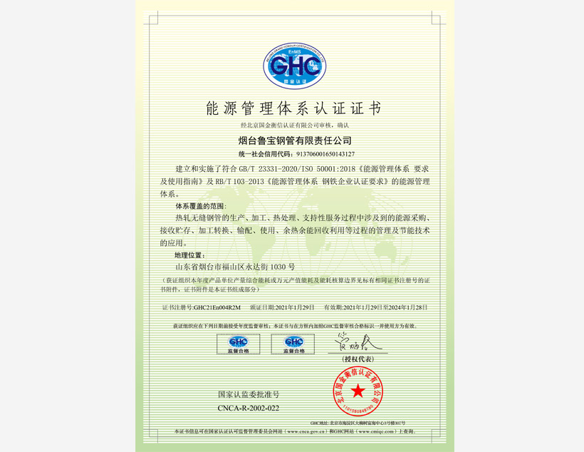 公司管理體系取得API Q1、ISO 9001、ISO 14001、ISO 45001和ISO 50001標(biāo)準(zhǔn)認(rèn)證證書,實(shí)驗(yàn)室取得ISO/IEC 17025認(rèn)可證書。